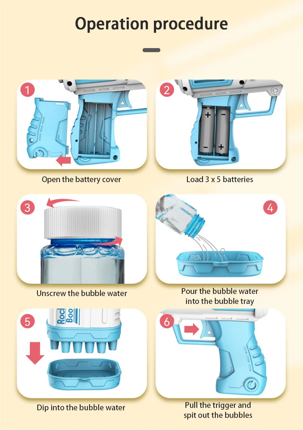 2.Motorized operation: with motorized design, just press the button to produce bubbles easily, easy to operate and suitable for children.